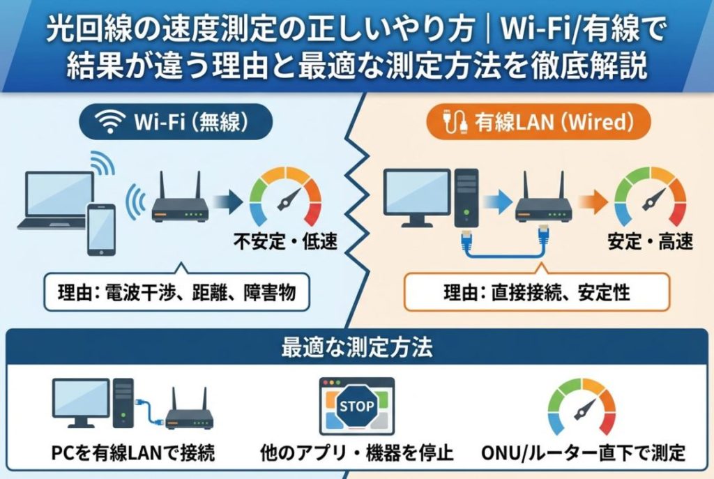 光回線の速度測定の正しいやり方|Wi-Fi/有線で結果が違う理由と最適な測定方法を徹底解説