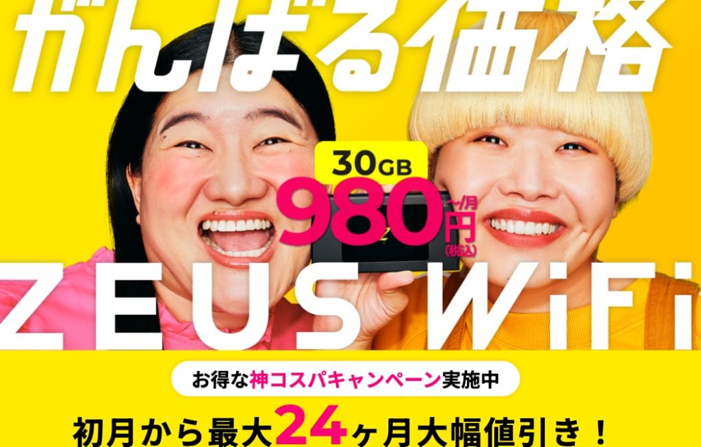 【ZEUSWiFi】今だけ980円/月〜ご利用に合わせて選べるプラン -