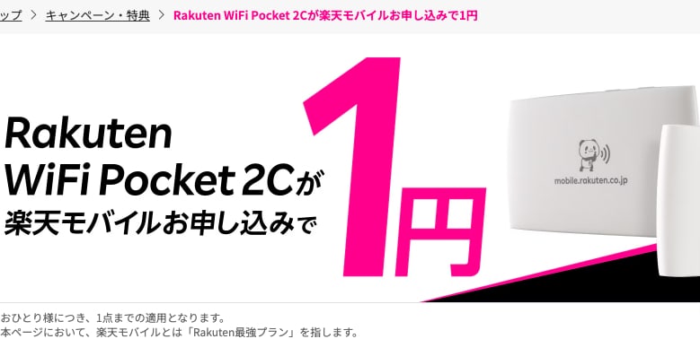 楽天モバイル【RakutenWiFiPocket2C】を徹底解説!端末1円 -