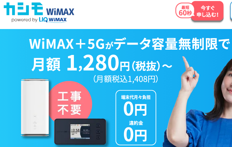 【カシモWiMAX】業界最安級の月額1,280円で使える高速通信サービスを徹底解説 -